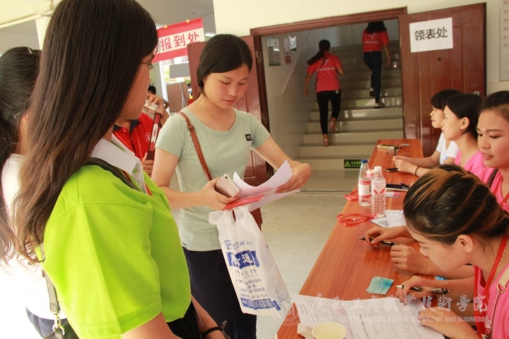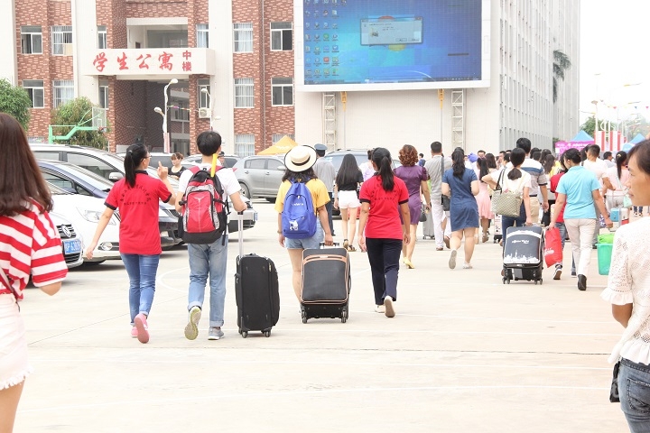 比這一切,更加鮮活熱烈的,是一張張新生們明麗的臉龐。在校門口到教學(xué)樓的這段路上,新同學(xué)們或三三兩兩,或單獨(dú)一人,或由親戚朋友陪同。報(bào)名處人滿為患,新同學(xué)們洋溢著青春的氣息,拿著錄取通知書和身份證井然有序地排著隊(duì)。家長們則在學(xué)院專設(shè)放行李的地方耐心等著自家孩子報(bào)完名。