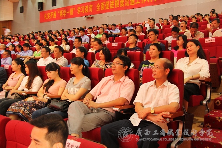 為弘揚柏鄉(xiāng)糧庫精神,深化糧食行業(yè)文化建設,深入開展“兩學一做”學習教育,9月20日,自治區(qū)糧食局邀請了全國糧食系統(tǒng)先進典型——河北柏鄉(xiāng)糧庫先進事跡宣講團來廣西南寧宣講,我院李維副院長、各單位、各部門科級以上干部代表及各系學生代表聆聽了報告。