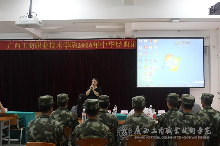 “詩(shī)的語(yǔ)言,典藏著五千年悠久的歷史文化;詩(shī)的聲音,演繹著不朽歷史的風(fēng)骨鏗鏘”。2016年9月28日下午,廣商院“中華經(jīng)典誦讀”比賽在院本部2145報(bào)告廳拉開(kāi)帷幕。蒙啟成副書記親臨現(xiàn)場(chǎng)與各部門、系部的老師以及受邀到學(xué)院指導(dǎo)軍訓(xùn)的部分教官觀看了本次比賽。
