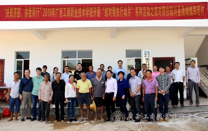 “以后有時(shí)間我們會常來的?!崩罹S副院長握著幫扶對象黃達(dá)成的手這么說,對方頻頻點(diǎn)頭表示感謝。2016年11月1日,教務(wù)科研處和財(cái)信系12名老師在李維副院長帶領(lǐng)下,來到學(xué)院定點(diǎn)幫扶的陸川縣清湖鎮(zhèn)那若村走訪慰問。這是根據(jù)上級有關(guān)部門精準(zhǔn)扶貧,結(jié)對幫扶文件精神,學(xué)院開展黨組織“結(jié)對共建“和在職黨員干部幫扶貧困戶活動及“結(jié)對幫扶活動月”方案而開展的一次進(jìn)村入戶幫扶貧困戶聯(lián)系貧困生的活動。