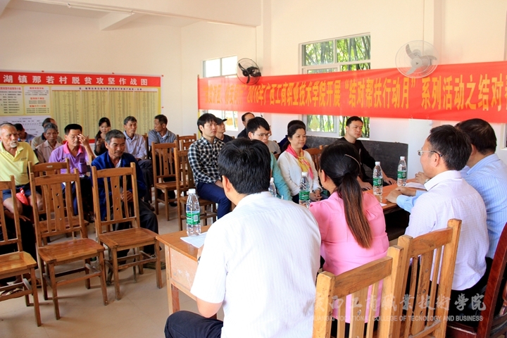 在那若村村委會,我院推薦,區(qū)黨委組織部選派的那若村第一黨支部書記譚序光同志主持了一個(gè)簡短的座談會。座談會上,李維副院長,教務(wù)科研處闕勇平處長,財(cái)信系覃遠(yuǎn)霞主任代表學(xué)院給那若村村委會捐贈了扶貧工作資金一萬元整。各位老師認(rèn)識了各自的幫扶對象,并把慰問金送到了幫扶對象的手里。