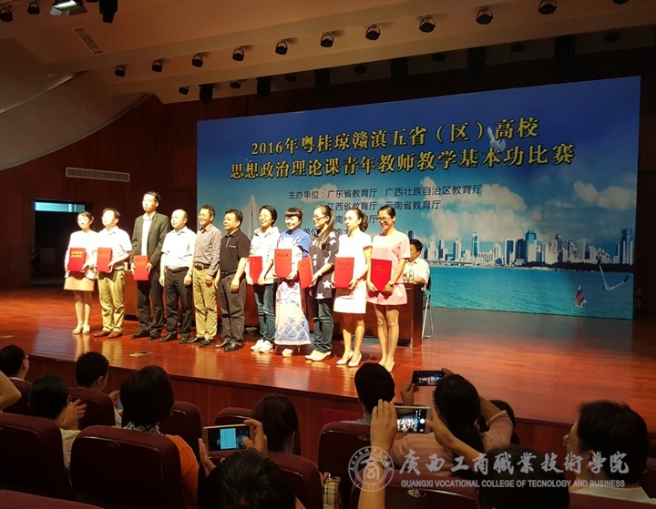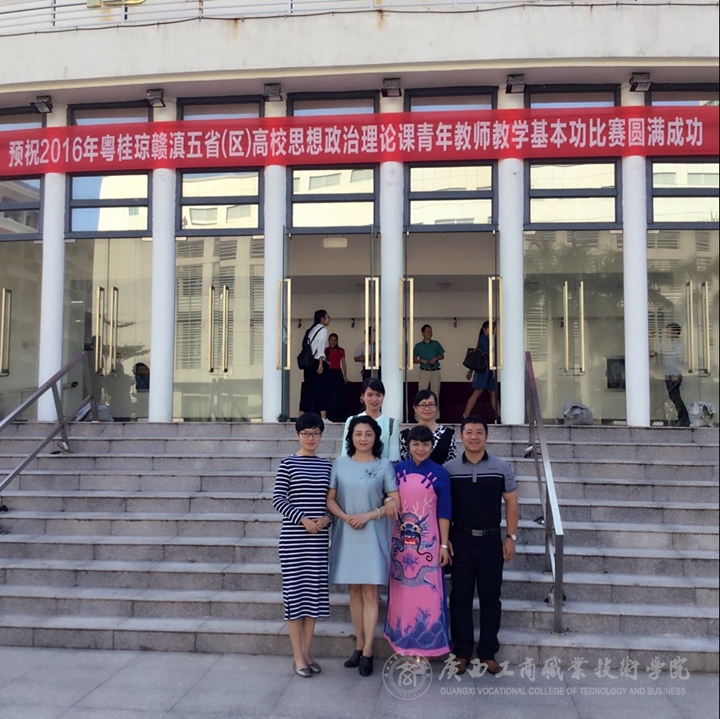 2016年11月3日,由粵桂瓊贛滇五省(區(qū))教育廳主辦、海南大學(xué)承辦的2016年粵桂瓊贛滇五省(區(qū))高校思想政治理論課青年教師教學(xué)基本功大賽在海南大學(xué)舉行。我院陶艷蘭老師代表廣西賽區(qū)參加了本次比賽。