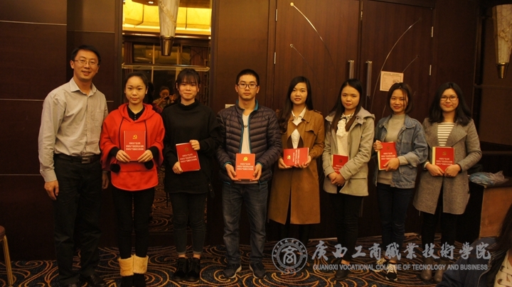 (蔣百平部長(zhǎng)為學(xué)生黨員等人送上學(xué)習(xí)資料)