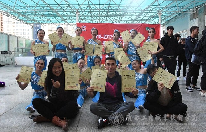 此次廣西分站賽,我院組成了由公共部副主任朱武壽老師領(lǐng)隊(duì),尹成功老師為總教練,盧炳秋老師和曾昭婷老師為助理教練的團(tuán)隊(duì),精心選拔參賽隊(duì)員,并進(jìn)行了近一個(gè)月的刻苦訓(xùn)練,共報(bào)名參加大學(xué)普通院校組的五個(gè)項(xiàng)目比賽。比賽中,在教練員團(tuán)隊(duì)的悉心指導(dǎo)下,運(yùn)動(dòng)隊(duì)員緊密協(xié)作,發(fā)揮出色,在大學(xué)普通院校組比賽中,街舞Breaking自選動(dòng)作項(xiàng)目中勇奪桂冠(特等獎(jiǎng)),2016年全國(guó)民族健身操規(guī)定傣族動(dòng)作項(xiàng)目中榮獲一等獎(jiǎng),民族健身操自選動(dòng)作項(xiàng)目榮獲一等獎(jiǎng),綜合齊舞風(fēng)格自選動(dòng)作項(xiàng)目榮獲二等獎(jiǎng),2015年全國(guó)街舞推廣套路Hiphop項(xiàng)目榮獲二等獎(jiǎng)。同時(shí)在此次比賽中,教練團(tuán)全體成員均榮獲 “優(yōu)秀教練員”稱號(hào)。值得一提的是,作為我院本次出征團(tuán)隊(duì)總教練的尹成功老師還是全國(guó)健身操舞國(guó)家一級(jí)裁判員、教練員。