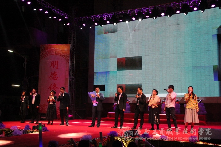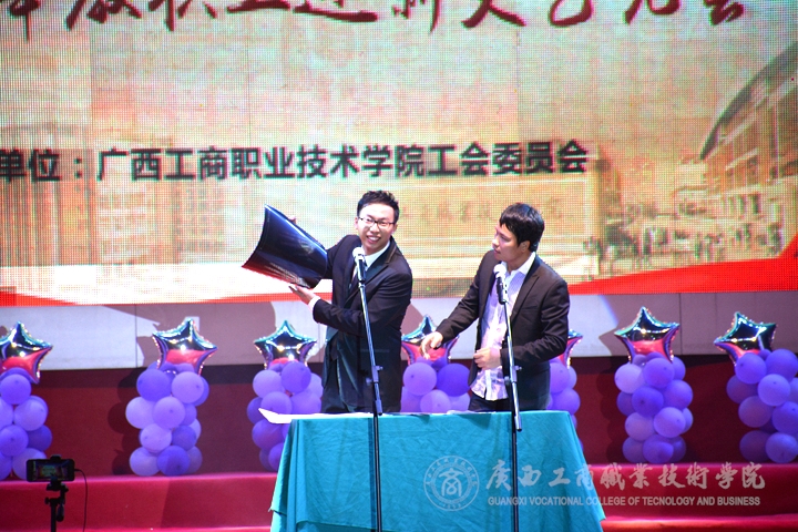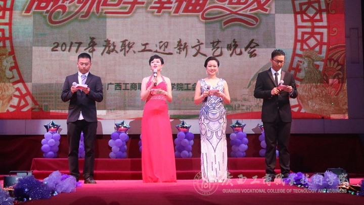 歡欣鼓舞辭舊歲,豪情滿懷迎新年!2017年1月6日晚19時(shí),我院2017年“商院小日子,幸福在出發(fā)”教職工迎新晚會(huì)在校本部LED大屏幕下隆重舉行。全體教職員工及其部分家屬歡聚一堂,輕歌曼舞,喜迎2017年的到來。晚會(huì)由劉佳家、馬力、劉源溢、張東冬四位老師主持,我院領(lǐng)導(dǎo)班子及全院師生觀看了本次晚會(huì),晚會(huì)由廣西工商職業(yè)技術(shù)學(xué)院工會(huì)委員會(huì)主辦。