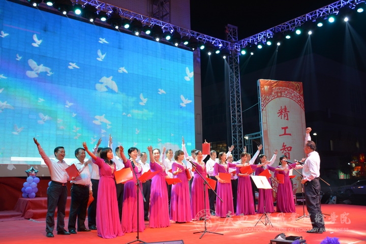 隨著晚會(huì)漸入佳境,繼續(xù)精彩不斷,歌舞不斷。經(jīng)管系分工會(huì)的《從七月開始》,以七月的紅旗為生命高歌;社科部分工會(huì)的《山路像花兒一樣》以多彩的服飾,教師們優(yōu)美的身姿,展現(xiàn)了民族文化的多樣性。架子鼓伴奏下的繼續(xù)教育部工會(huì)小組帶來了趣味舞蹈《桃花朵朵開》;還有黨委學(xué)工處的獨(dú)唱《愛是永恒》歌聲細(xì)膩,更是與觀眾有了精彩的互動(dòng);經(jīng)典是讓人無法忘懷,廣商院老男孩樂隊(duì)將樂器的結(jié)合經(jīng)典歌曲《真的愛你》使臺(tái)下的觀眾也不由自主的唱起來。財(cái)信系工會(huì)帶來的舞蹈《瘋》把握住了爵士特征與街舞風(fēng)格,將時(shí)尚元素完美結(jié)合。悠揚(yáng)的歌聲,歡快的舞蹈,悅耳的演奏,精彩的相聲、鏗鏘有力的朗誦……將整個(gè)晚會(huì)裝點(diǎn)的精彩紛呈。晚會(huì)的最后由歌曲《共筑中國(guó)夢(mèng)》歌聲中落下帷幕……