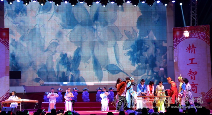 隨著強(qiáng)勁的鼓聲響起,合唱、朗誦、舞蹈、現(xiàn)代京劇、走秀、樂隊(duì)演唱、相聲,小品等24個(gè)精彩節(jié)目為觀眾呈現(xiàn)了豐盛的視聽盛宴。晚會(huì)在后勤管理處工會(huì)小組帶來的《歌唱祖國(guó)》中拉開帷幕,熱烈充滿愛國(guó)的情感,激動(dòng)人心,歌曲帶動(dòng)了現(xiàn)場(chǎng)氣氛。緊接著是組織人事工會(huì)小組傾心演繹的《紅顏舊》歌舞表演,也是韻味十足;一首《工商歡迎你》由教務(wù)科研處工會(huì)小組帶來,嘹亮的歌聲唱進(jìn)每位廣商院師生心中。財(cái)信系分工會(huì)的一首詩歌朗誦《偉大的長(zhǎng)征》銘記光輝歷程弘揚(yáng)長(zhǎng)征精神;會(huì)計(jì)系分工會(huì)《會(huì)計(jì)系之歌》一展歌喉,更有關(guān)于會(huì)計(jì)專業(yè)性的表演,盡是展現(xiàn)了會(huì)計(jì)風(fēng)采;經(jīng)管系分工會(huì)帶來了典雅的舞蹈《茉莉花》,老師們舞姿曼妙,手拿花折扇,似一朵綻放的茉莉花,清新淡雅,贏得觀眾喝彩?,F(xiàn)教中心工會(huì)小組《年代秀》把我們童年時(shí)代看過的影視作品,通過自己新穎的方式重新演繹了一遍,情懷與搞怪的組合,真是創(chuàng)意無限!圖書館工會(huì)小組帶來精彩舞蹈《愛我中華》,舞出大中華欣欣向榮的情勢(shì),表達(dá)出祖國(guó)明天會(huì)更好的祈愿;評(píng)估督導(dǎo)室工會(huì)小組表演的是《智取威虎山》中的《共產(chǎn)黨員時(shí)刻聽從黨召喚》選段現(xiàn)代京劇,讓在座觀眾領(lǐng)略一番中華國(guó)粹獨(dú)特的藝術(shù)演繹,博得了滿堂喝彩?,F(xiàn)教中心工會(huì)小組的一首年輕活力、充滿青春氣息的《青春小幸運(yùn)》合唱帶給觀眾不一樣的感受。整場(chǎng)晚會(huì)精彩不斷,高潮迭起,贏得臺(tái)下陣陣掌聲,歡呼聲一浪高一浪,經(jīng)管系分工會(huì)帶來的相聲《誰是主持誰是嘉賓》幽默而生動(dòng)的表演深深地吸引了臺(tái)下的師生。更有學(xué)院辦公室工會(huì)小組《明天你是否依然愛我》的吉他彈唱,悅耳動(dòng)聽,深情款款;晚會(huì)的節(jié)目各具特色,舞臺(tái)劇《福滿天下》在公共基礎(chǔ)部的演繹下,古箏相伴下的舞姿表現(xiàn)力十足,更是為新的一年送上了春聯(lián);組織人事工會(huì)小組一首《老大去哪兒》唱出了廣商院的宏圖壯志;學(xué)院辦公室工會(huì)小組將古典舞的美在《古韻》中詮釋,晚會(huì)散發(fā)著一股典雅的韻味,引人回味。情景詩朗誦《長(zhǎng)征路上繼續(xù)前行》由公共基礎(chǔ)部工會(huì)小組帶來,演繹出了紅軍精神;