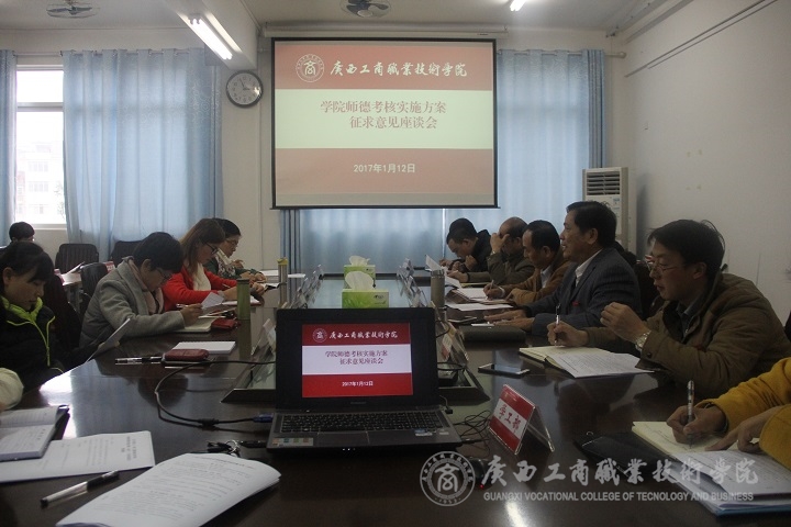 2017年1月12號(hào)下午,我院在2109會(huì)議室召開了師德考核實(shí)施方案征求意見(jiàn)座談會(huì)。學(xué)院黨委副書記蒙啟成出席了本次會(huì)議,學(xué)院各部門相關(guān)負(fù)責(zé)人參加會(huì)議,會(huì)議由學(xué)院黨委宣傳部部長(zhǎng)韋勝?gòu)?qiáng)主持。