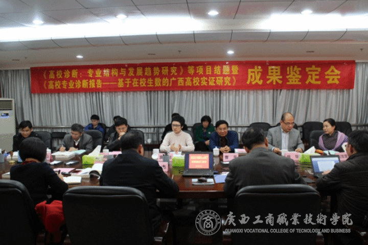 ??????? 據(jù)介紹,《高校診斷:專(zhuān)業(yè)結(jié)構(gòu)與發(fā)展趨勢(shì)研究》項(xiàng)目,是廣西壯族自治區(qū)教育廳以桂教科研〔2014〕8號(hào)文件下達(dá)的由我院院長(zhǎng)陳杰教授為負(fù)責(zé)人承擔(dān)的委托課題?!痘诜謱?zhuān)業(yè)在校生數(shù)的廣西高等學(xué)校專(zhuān)業(yè)診斷分析》項(xiàng)目組是在自治區(qū)教育廳李向紅處長(zhǎng)及陳杰院長(zhǎng)的帶領(lǐng)下,由自治區(qū)教育廳規(guī)劃處干部和廣西工商職院科研人員23人共同組成。該項(xiàng)目以廣西工商職業(yè)技術(shù)學(xué)院職業(yè)教育研究所為研究基地,歷經(jīng)3年,經(jīng)團(tuán)隊(duì)成員反反復(fù)復(fù)無(wú)數(shù)次集中推敲、分散論證,再集中研討,才最后確定研究方案。在研究過(guò)程中,項(xiàng)目組成員通過(guò)參照國(guó)家相關(guān)法規(guī)文件,制定了若干高校評(píng)價(jià)工具和模型,先后設(shè)計(jì)了12個(gè)課題標(biāo)準(zhǔn)表。在制訂12個(gè)《標(biāo)準(zhǔn)表》的基礎(chǔ)上,項(xiàng)目組經(jīng)反復(fù)研討,設(shè)計(jì)了系列《數(shù)據(jù)表》,再將廣西全區(qū)高校數(shù)據(jù)倒入表格,進(jìn)行對(duì)比分析,不斷修改、完善,形成了《診斷報(bào)告模板》。