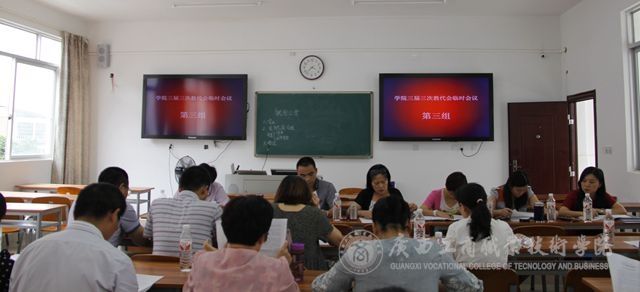 會(huì)議結(jié)束后,參會(huì)代表進(jìn)行了分組討論,由蔣百平主任、付光部長(zhǎng)、林芳主任、劉萬(wàn)英主任、林雯主任召集五個(gè)討論小組分別在教學(xué)樓2204、2205、2223、2224、2225教室討論關(guān)于我院章程的建設(shè)(征求意見(jiàn)稿)。分組討論中,代表們就《廣西工商職業(yè)技術(shù)學(xué)院章程》發(fā)表了自己的意見(jiàn)和看法。各方積極配合,全體共同努力探討結(jié)果。至下午17點(diǎn)10分,我院三屆三次教代會(huì)臨時(shí)會(huì)議圓滿(mǎn)結(jié)束。