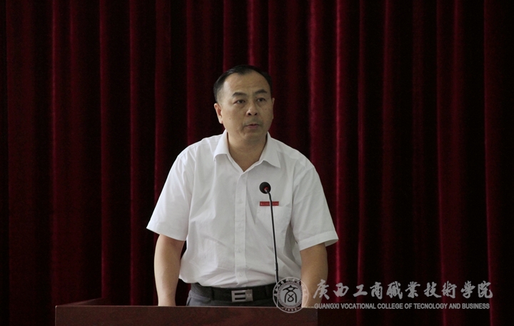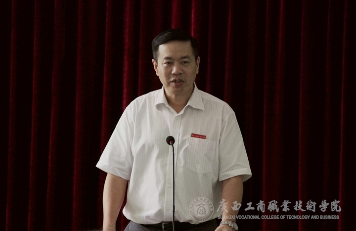 2015 年 6 月 11日下午,我院在校本部教學樓報告廳舉辦中層領導干部依法治校專題培訓班結業(yè)儀式。學院領導覃武云、蒙啟成、李仕欽、李維出席,學院中層以上領導干部參加。儀式由蒙啟成副書記主持。