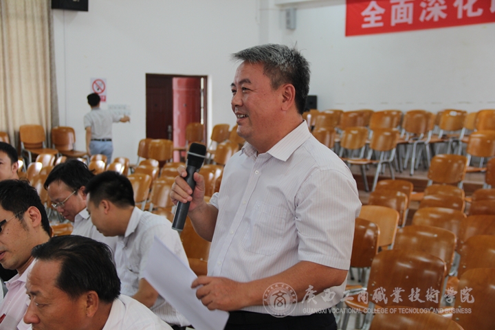 儀式上,學院黨委書記覃武云同志作培訓班作重要講話。覃書記首先回顧了制定學院中層領導干部依法治校專題培訓班工作方案并下發(fā)通知作出部署,舉辦學院中層領導干部依法治校專題培訓班開班式。覃書記指出,培訓班培訓方式靈活多樣,整理印發(fā)多種學習資料,并請專家舉辦依法治校專題講座,自學、專家輔導、共同研討相相結合,取得了很好的效果。通過此次培訓,有序地推進了學院章程修訂工作,同時扎實推進學院領導體制建設和內(nèi)部管理體制建設。最后,覃書記還展示了中層領導干部依法治校專題培訓班所取得的成果。