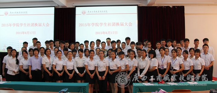 2015年6月17日,我院2015年學(xué)生社團(tuán)換屆大會(huì)于校本部教學(xué)樓2214報(bào)告廳隆重舉行,學(xué)院25個(gè)社團(tuán)集體換屆儀式將在此次大會(huì)上舉行。學(xué)院團(tuán)委副書(shū)記陳宇寧老師、學(xué)院團(tuán)委陶曉斌老師、經(jīng)管系方亮老師,學(xué)院學(xué)生社團(tuán)聯(lián)合會(huì)全體成員以及學(xué)院25個(gè)社團(tuán)主要干部出席了本次大會(huì)。