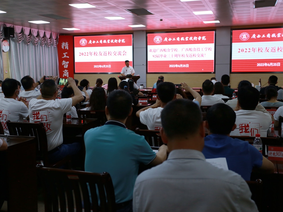 6月25日上午,我院2022年校友返校交流會(huì)在鵬飛校區(qū)順利召開(kāi)。60多位來(lái)自各行各業(yè)畢業(yè)30周年的校友重返校園,重溫學(xué)生時(shí)光,紀(jì)念畢業(yè)30周年之際,共敘師生情、共話同窗誼,為學(xué)院建設(shè)共謀新發(fā)展。學(xué)院黨委書(shū)記覃武云同志、院長(zhǎng)李維同志、副院長(zhǎng)陳寧春、闕勇平同志以及學(xué)院各部門(mén)、各單位的負(fù)責(zé)人出席會(huì)議。會(huì)議由闕勇平副院長(zhǎng)主持。