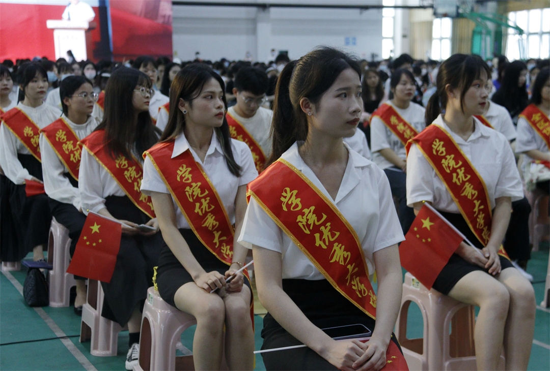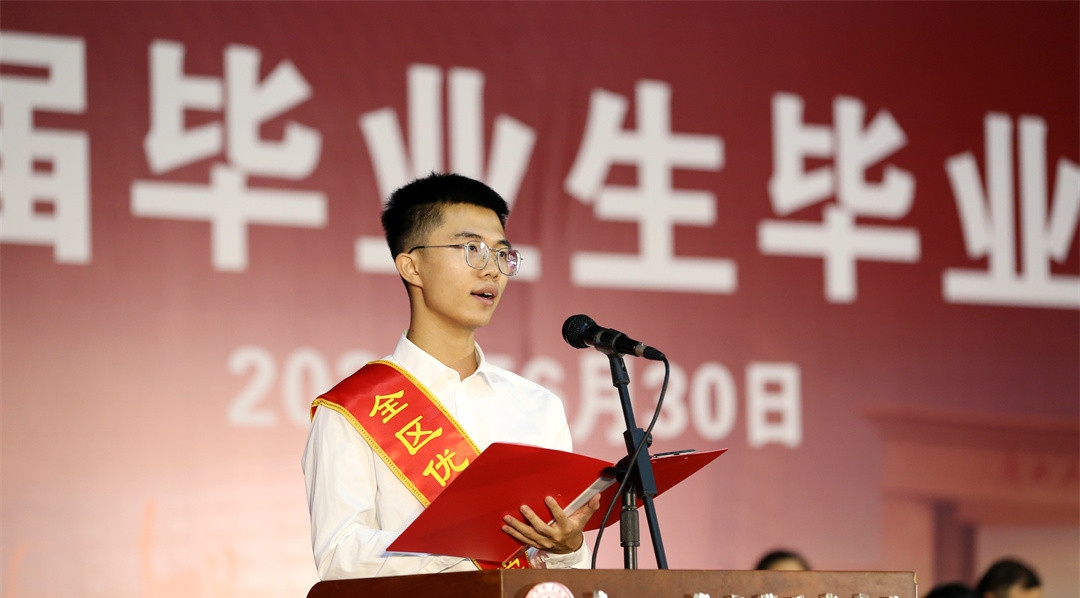 畢業(yè)典禮在莊嚴(yán)激昂的國歌聲中拉開序幕。學(xué)院副院長闕勇平宣讀畢業(yè)生文件,決定對(duì)2022屆畢業(yè)生黎美辰等3832位同學(xué)授予中華人民共和國普通高等學(xué)校畢業(yè)證書。獲得自治區(qū)優(yōu)秀畢業(yè)生榮譽(yù)稱號(hào)的經(jīng)貿(mào)學(xué)院營銷1905班藍(lán)滿奇同學(xué)代表全體畢業(yè)生發(fā)言。他表示,作為新時(shí)代的新青年,他將勇敢肩負(fù)起時(shí)代賦予的重任,腳踏實(shí)地,努力在實(shí)現(xiàn)中華民族偉大復(fù)興的中國夢的生動(dòng)實(shí)踐中放飛青春夢想,實(shí)現(xiàn)人生目標(biāo)。謹(jǐn)記校訓(xùn),胸懷理想,以國家富強(qiáng)、人民幸福為己任,投身中國特色社會(huì)主義偉大實(shí)踐。