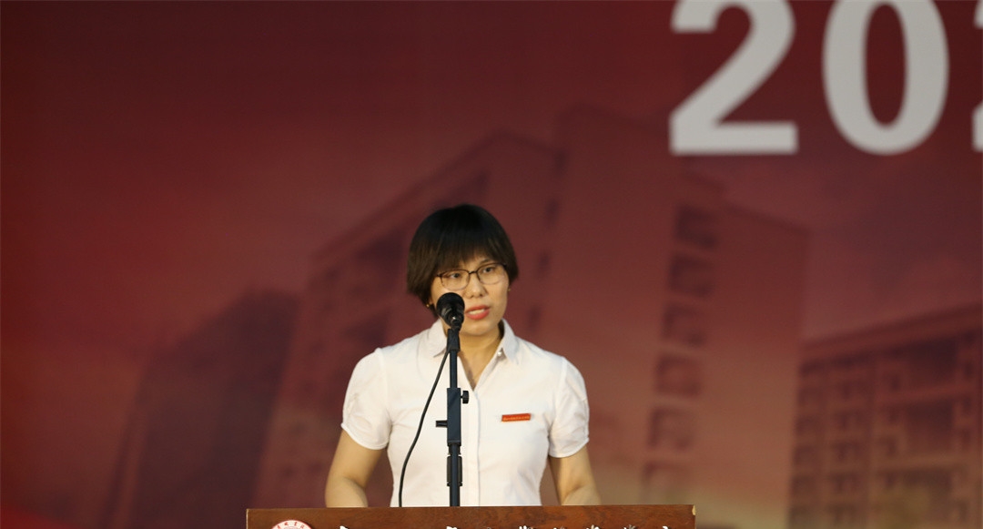 我院2021年度優(yōu)秀教師、學(xué)院思政課鑄魂育人團(tuán)隊(duì)負(fù)責(zé)人,廣西高校思想政治教育杰出人才第一批支持對(duì)象趙婷老師代表全體教師發(fā)言。她希望同學(xué)們:“以夢為馬,莫負(fù)韶華,帶著知識(shí)和激情,將個(gè)人的發(fā)展與時(shí)代的進(jìn)步融合在一起,投入到全面建設(shè)社會(huì)主義現(xiàn)代化強(qiáng)國當(dāng)中去,投入到建設(shè)新時(shí)代中國特色社會(huì)主義壯美廣西當(dāng)中去,在最富有創(chuàng)造力的青春年華,發(fā)出時(shí)代最強(qiáng)音!”
