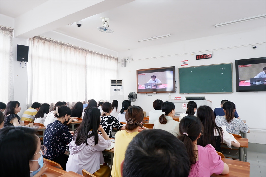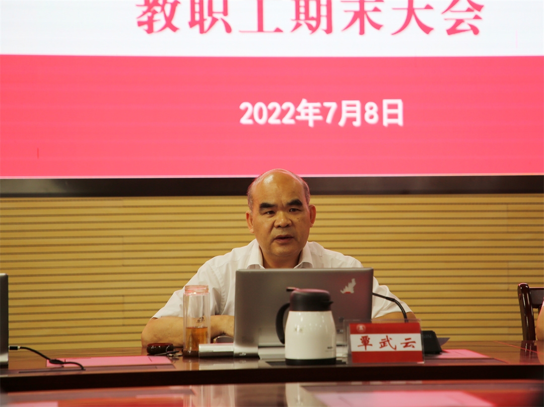 7月8日下午,我院2021-2022學(xué)年第二學(xué)期教職工期末大會在鵬飛校區(qū)召開。全體學(xué)院領(lǐng)導(dǎo)、教職工參加會議。會議由學(xué)院黨委書記覃武云主持。