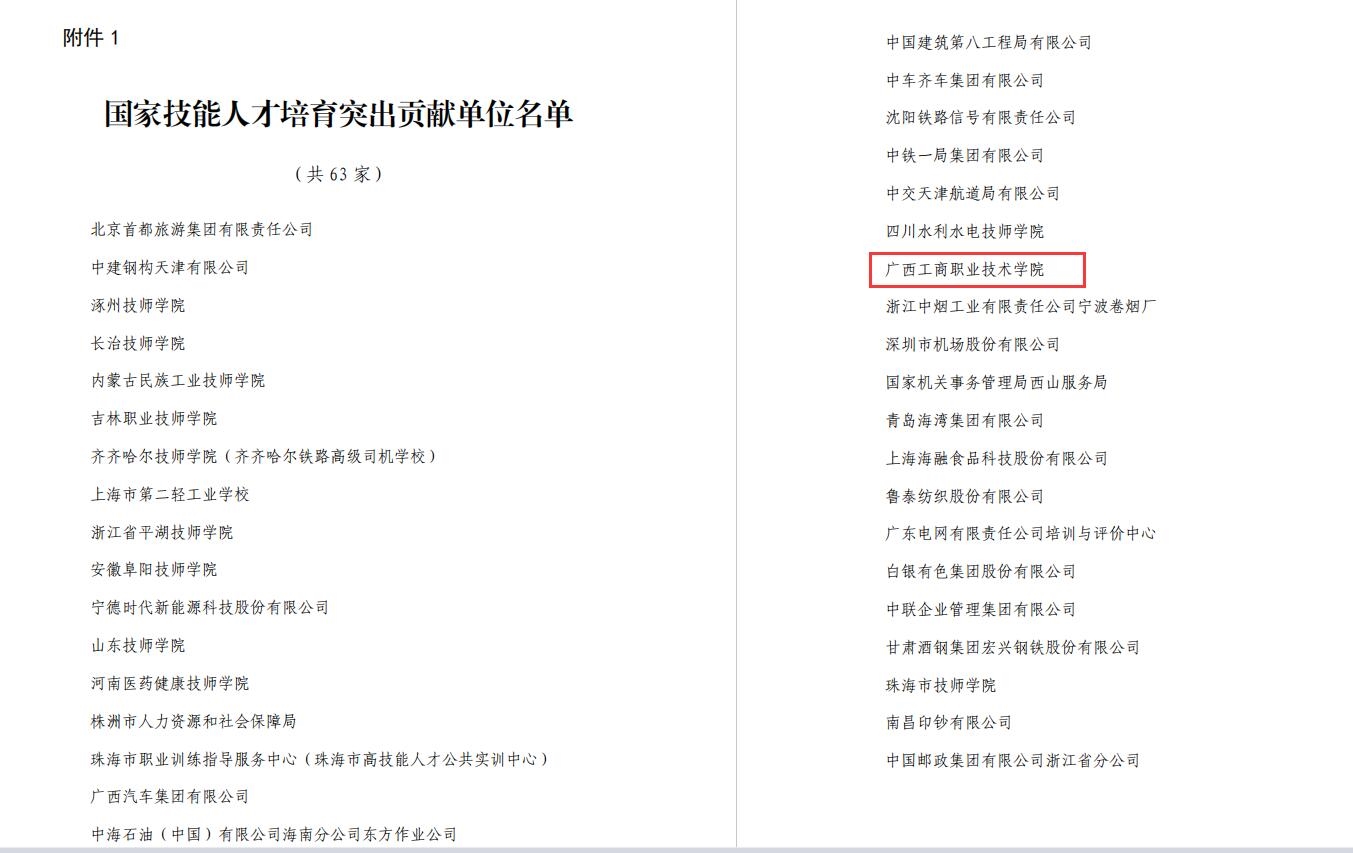 2022年12月28日,人力資源和社會保障部發(fā)布《關(guān)于表揚(yáng)國家技能人才培育工作突出貢獻(xiàn)單位和個人的通知》,對為國家技能人才培育工作作出突出貢獻(xiàn)的單位和個人給予表揚(yáng)。我院被評為國家技能人才培育工作突出貢獻(xiàn)單位,是今年全國63家、廣西2家獲此榮譽(yù)的單位之一,也是全國糧食和物資儲備系統(tǒng)唯一獲評的單位。