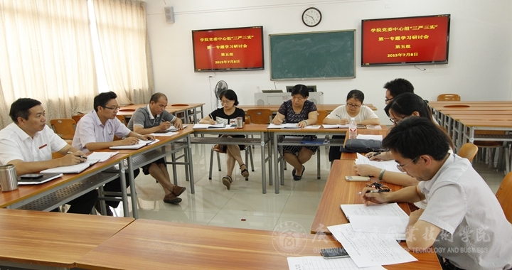 為了進(jìn)一步加強(qiáng)學(xué)院黨員干部的思想道德建設(shè),做好“三嚴(yán)三實(shí)”第一專(zhuān)題學(xué)習(xí)研討有關(guān)工作,我院中層以上領(lǐng)導(dǎo)干部在結(jié)束7月8日上午的“三嚴(yán)三實(shí)”第一專(zhuān)題集中學(xué)習(xí)研討后,于下午3點(diǎn)整,在教學(xué)樓分五組進(jìn)行黨委理論學(xué)習(xí)中心組(擴(kuò)大)學(xué)習(xí)會(huì)分組討論。