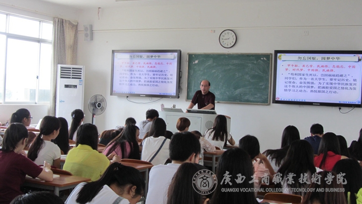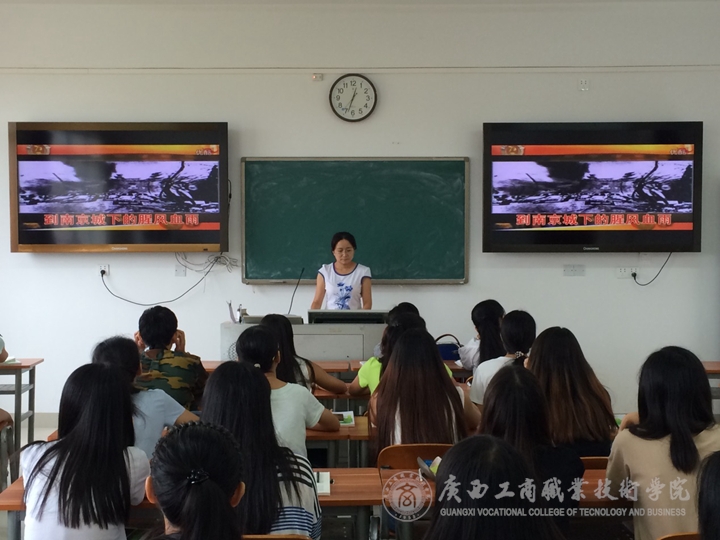 學院所有院級領(lǐng)導分成幾組深入課堂一起聆聽了這具有紀念意義的第一課。學院覃武云書記在課后總結(jié)說到:在開學第一課中通過多種形式以“勿忘國恥、圓夢中華”為主題來紀念中國人民抗日戰(zhàn)爭暨世界反法西斯戰(zhàn)爭勝利70周年,對學生是一種非常好的愛國主義和革命傳統(tǒng)教育,必將對培養(yǎng)學生的社會主義核心價值觀,弘揚民族愛國主義精神起積極作用。希望今后在開學第一課的時候都可以結(jié)合時事來切入不同的教學主題,真正實現(xiàn)教書育人的目的。