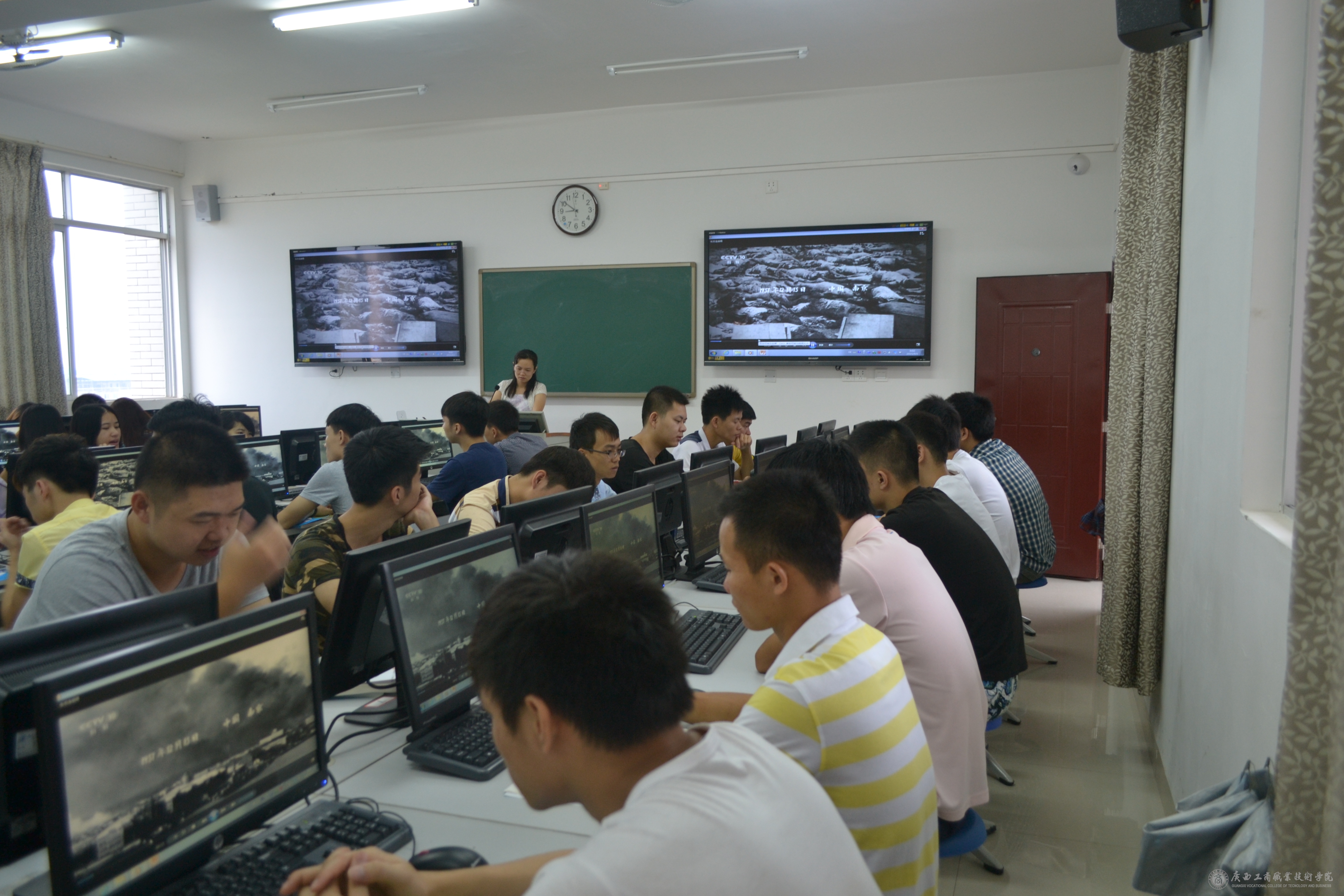 在開學(xué)的第一周中,我系教師在同學(xué)們的假期結(jié)束返校的第一課上,利用課前10分鐘或者課間10分鐘,為同學(xué)們簡單的講述了抗日戰(zhàn)爭的歷史以及抗戰(zhàn)勝利的偉大意義,并為同學(xué)們播放了由中央電視臺、軍事科學(xué)院政治部、江蘇省廣播電視總臺、陜西廣播電視臺等單位聯(lián)合拍攝的八集大型紀(jì)錄片《東方主戰(zhàn)場》的第一集《東方危急》的一小段,并讓同學(xué)們利用課余的時間,自行觀看這部紀(jì)錄片,了解歷史,勿忘國恥,要繼承和弘揚抗日民族統(tǒng)一戰(zhàn)線優(yōu)良傳統(tǒng)。