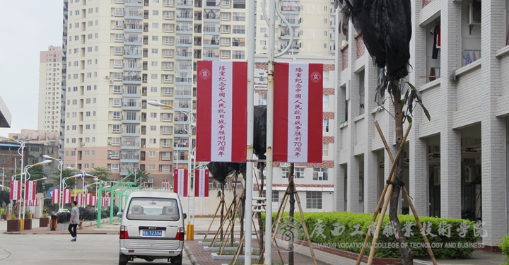 大力營造紀(jì)念活動良好的校園氛圍。我院利用宣傳櫥窗、校園燈桿旗、大型LED顯示屏、視頻系統(tǒng)、廣播等宣傳平臺廣泛開展紀(jì)念抗戰(zhàn)勝利70周年宣傳活動,使生活學(xué)習(xí)工作在校園內(nèi)的廣大師生,不管在校園那個地方都可感受到紀(jì)念抗戰(zhàn)勝利濃厚氛圍。