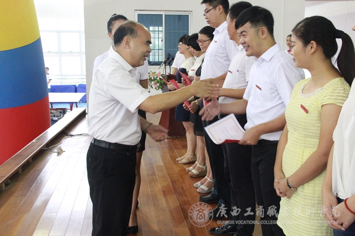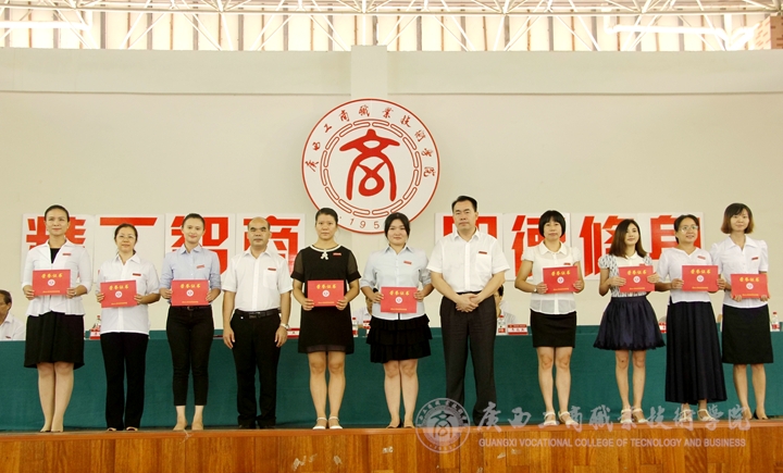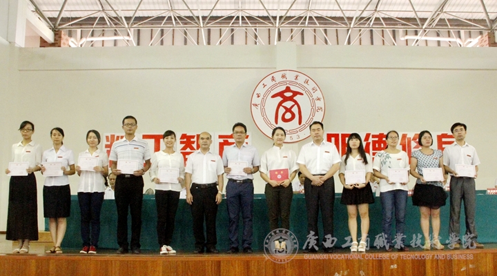 在慶祝教師節(jié)大會(huì)上,李仕欽副院長(zhǎng)宣讀了學(xué)2014-2015年優(yōu)秀輔導(dǎo)員、班級(jí)主任的表彰文件。覃武云書記、陳杰院長(zhǎng)為獲獎(jiǎng)的老師頒獎(jiǎng)并與受表彰的老師合影留念。