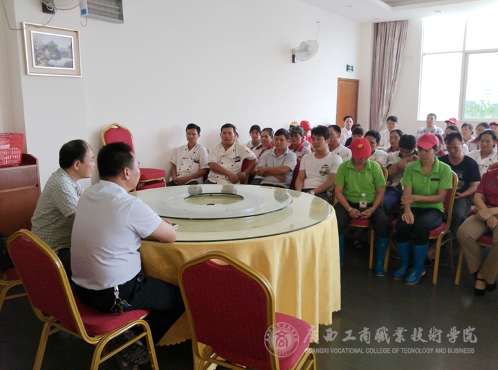 9月16日中午13:00,根據(jù)上級領(lǐng)導(dǎo)機關(guān)的工作安排,為配合南寧市國家衛(wèi)生城市復(fù)查工作,學(xué)院在食堂二樓召開了食堂所有員工工作會議,后勤管理處(保衛(wèi)處)莫春華副處長及食品衛(wèi)生科人員參加了會議。