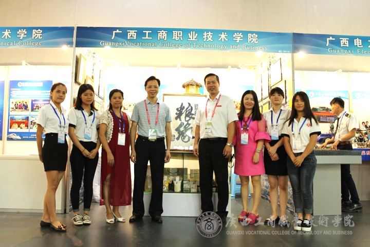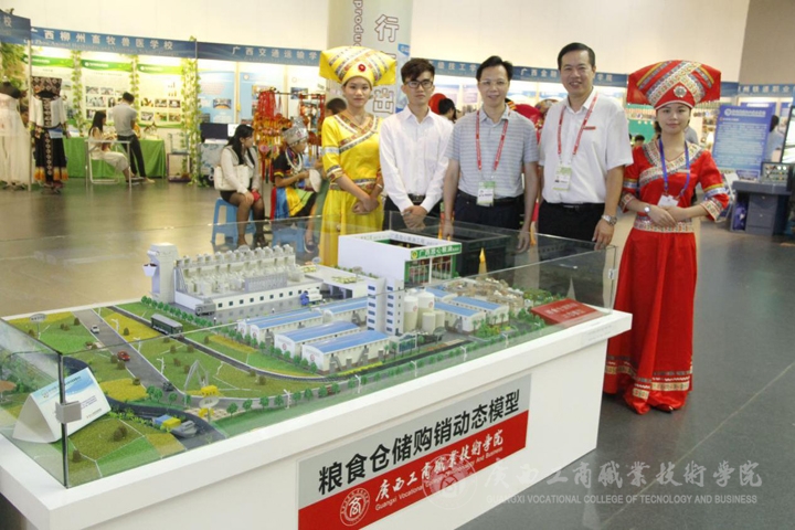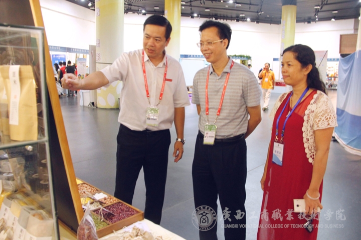 自治區(qū)糧食局領(lǐng)導(dǎo)重視東盟職教聯(lián)展工作,韋尚英處長(左三)親臨展位指導(dǎo)