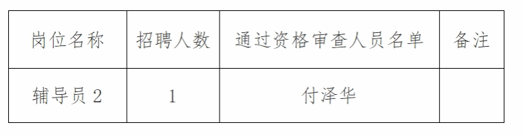 經(jīng)資格審查,第一批資格審查通過名單已于2024年5月31日在我校官網(wǎng)公布。經(jīng)對(duì)照相關(guān)崗位條件進(jìn)行核查,現(xiàn)將輔導(dǎo)員2崗位資格審查通過人員名單進(jìn)行補(bǔ)充公告如下: