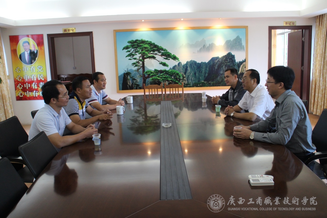 • 2015年10月26日上午9時,梧州職業(yè)學(xué)院聶振傳院長一行3人到我院考察交流。我院黨委書記覃武云、院長陳杰熱情接待了聶振傳院長一行。 隨后我院院長陳杰、副院長李維和黨委辦公室(學(xué)院辦公室)負(fù)責(zé)人與聶振傳院長一...