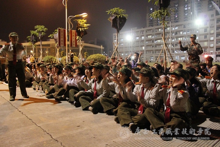 • 2015年12月9日晚上7時,我院2015級軍訓(xùn)拉歌比賽在校本部順利舉行。 每班由一位指揮員帶領(lǐng)拉歌。隨著指揮員的口號,同學(xué)們配合著手勢,用最大的嗓門盡情地叫喊著“來一個!對面的!來一個!叫你來你就來!……”“...