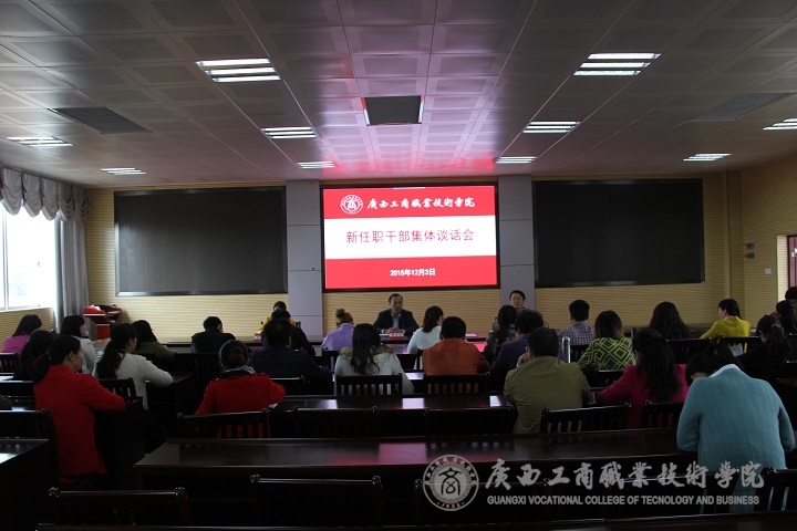 • 12月3日下午,我院召開新任職干部集體談話會。學(xué)院黨委副書記蒙啟成出席會議,黨委組織部(人事處)主持工作副部(處)長蔣百平主持會議。2015年10月以來新任職科級干部及交流換崗干部參加了會議。 會上,蔣百平...