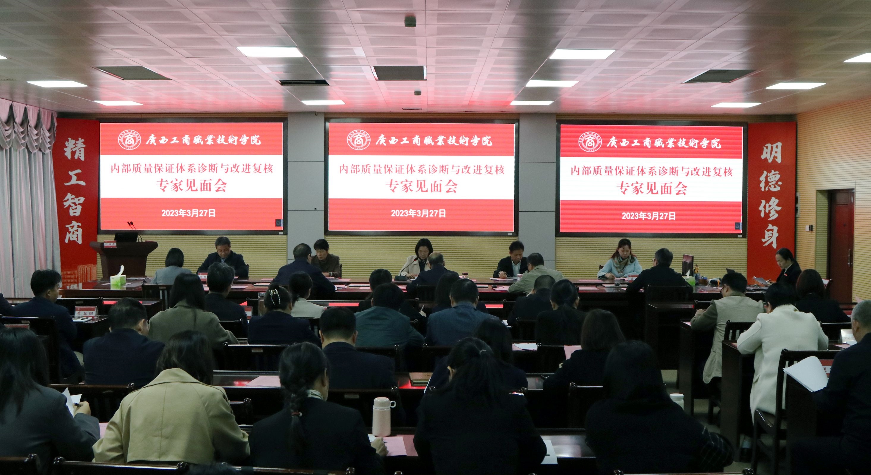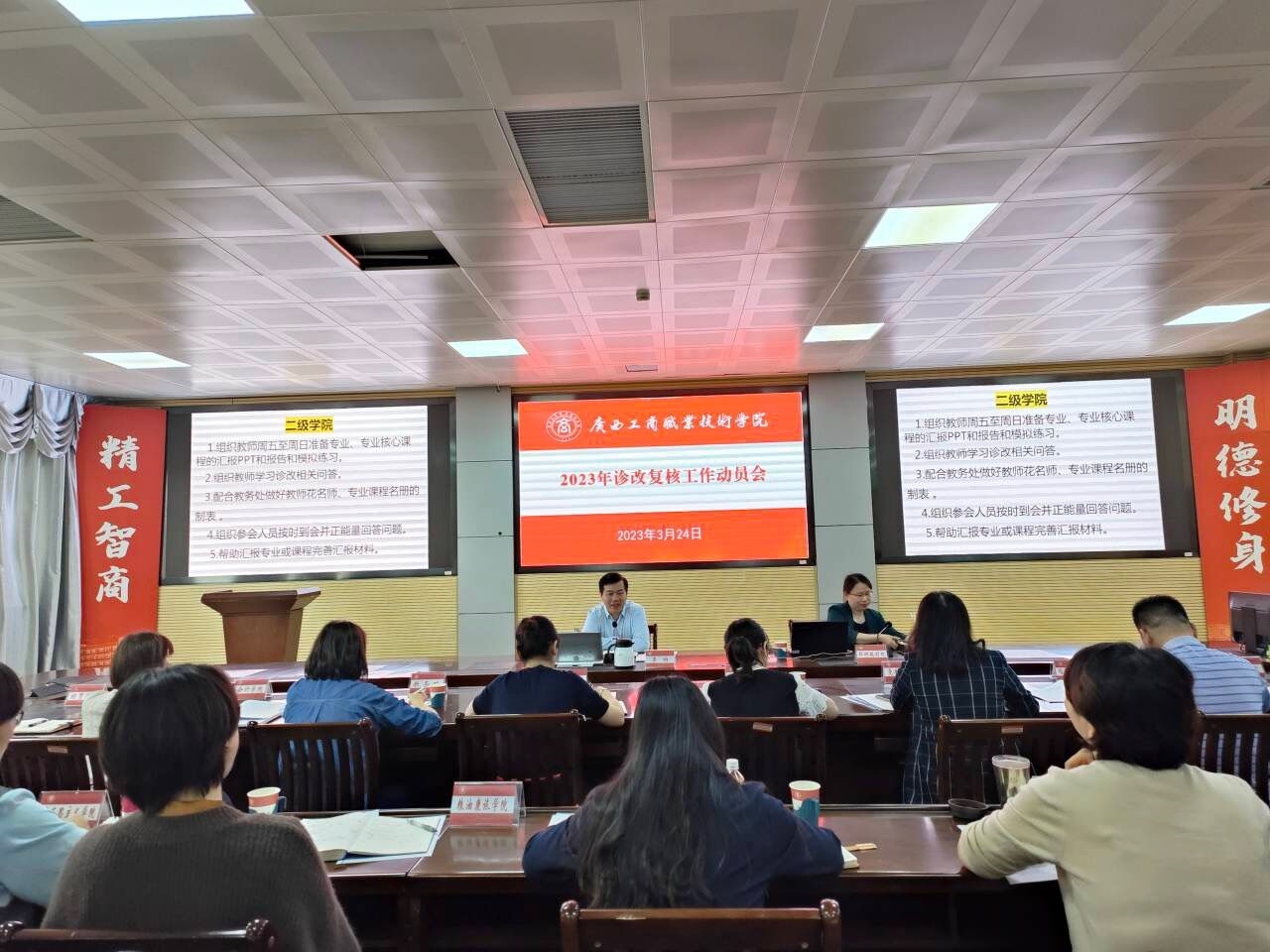 • 為做好內(nèi)部質(zhì)量保證體系診斷與改進復核有關(guān)籌備工作,我院于3月24日上午,在鵬飛校區(qū)2119會議室召開學院2023年診改復核工作動員會。學校院長李維、診改復核工作領(lǐng)導小組成員和診改復核工作組成員參加會議,科研規(guī)...