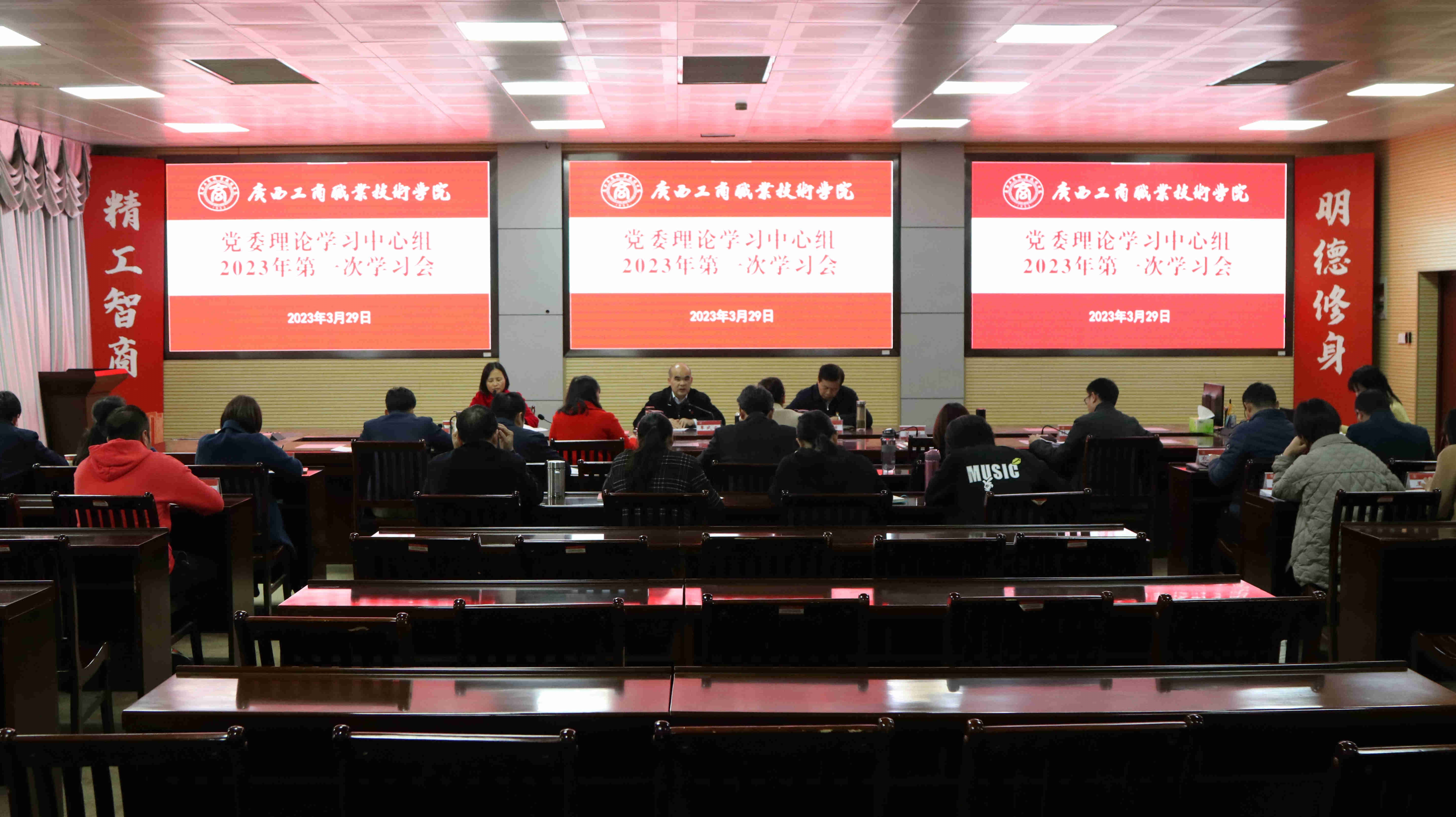 • 3月29日,我院召開黨委理論學習中心組2023年第一次學習會,深入學習貫徹習近平新時代中國特色社會主義思想和黨的二十大精神以及習近平總書記最新重要講話精神和重要指示批示精神。學院黨委書記覃武云主持會議并講...