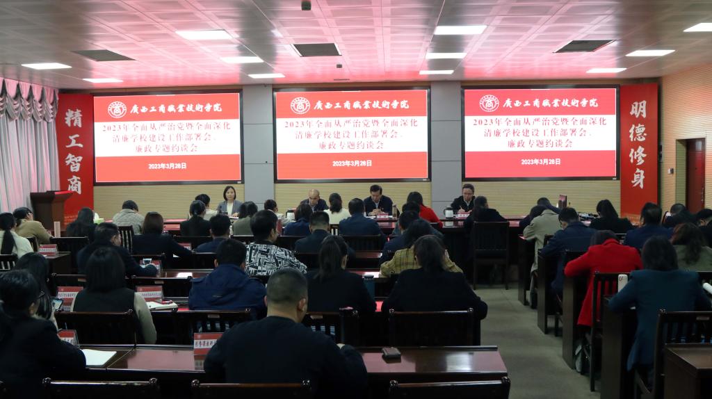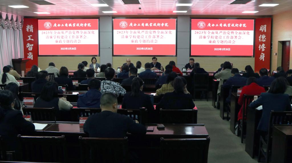• 3月28日下午,我院召開2023年廉政專題約談會,學院黨委書記覃武云對我院黨員干部進行廉政專題集體約談,就巡察、巡察“回頭看”、共性問題舉一反三整改工作、“三重一大”決策制度執(zhí)行情況等工作中發(fā)現(xiàn)的問題和不...