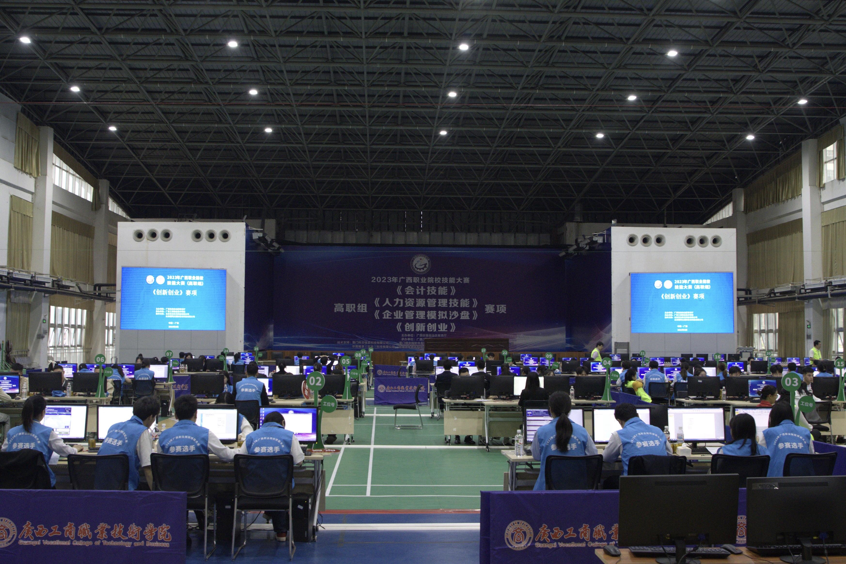 • 3月18-19日,由自治區(qū)教育廳主辦、我院承辦的2023年廣西職業(yè)院校技能大賽(高職組)《創(chuàng)新創(chuàng)業(yè)》賽項在我院鵬飛校區(qū)成功舉辦。此次比賽,共有27所高職院校代表隊的135名精英參賽。(理論考核現(xiàn)場)(選手認真參賽...