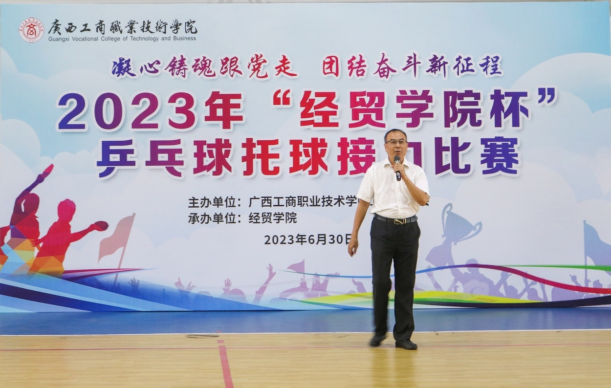 • 6月30日下午,學(xué)院工會(huì)在文體館舉行2023年凝心鑄魂跟黨走?團(tuán)結(jié)奮斗新征程“經(jīng)貿(mào)學(xué)院杯”乒乓球托球接力比賽。此次活動(dòng)由經(jīng)貿(mào)學(xué)院承辦,共有8個(gè)工會(huì)分會(huì)和9個(gè)直屬工會(huì)小組,近400余名教職工會(huì)員參加。學(xué)院黨委副書...