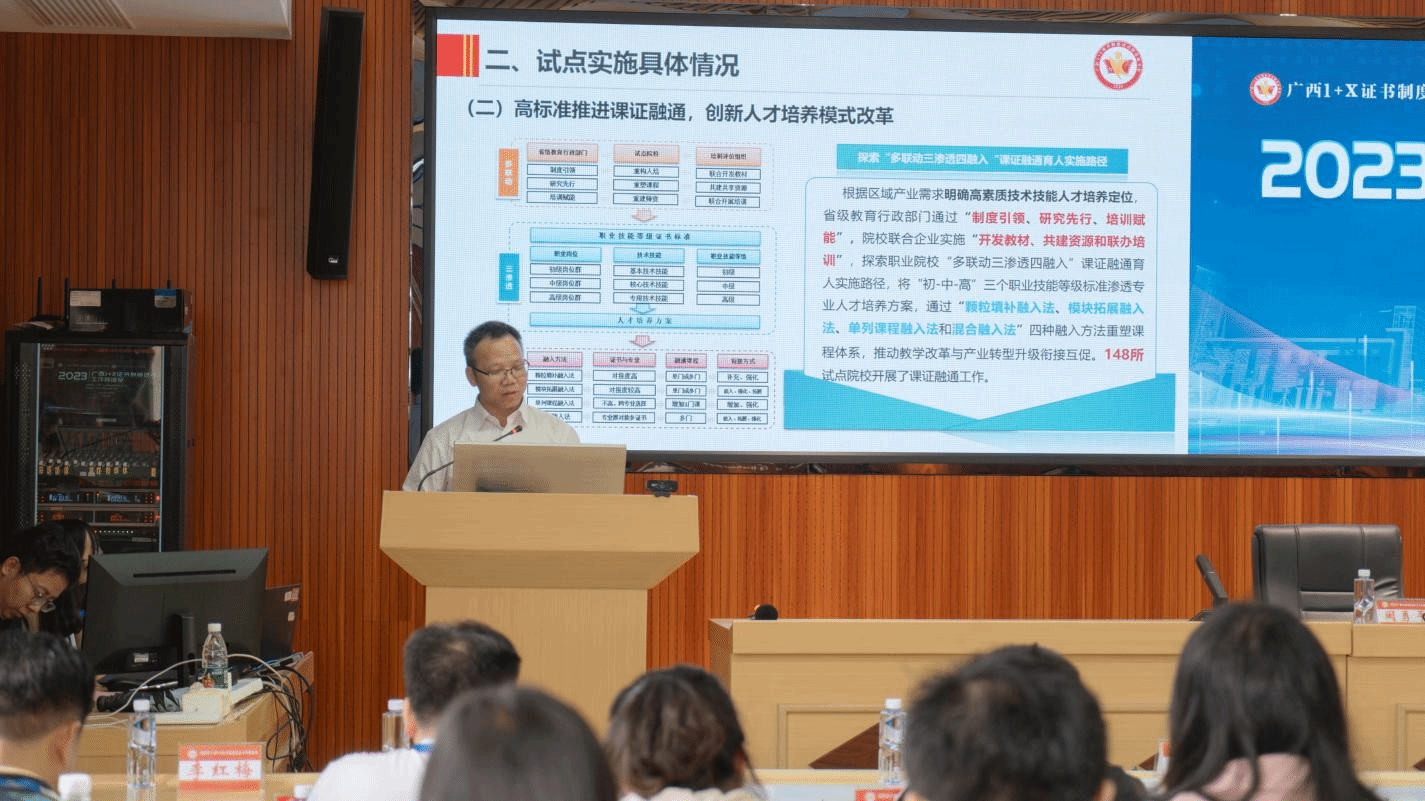 • 10月20日,由廣西1+X證書制度試點建設(shè)秘書處主辦、廣西工商職業(yè)技術(shù)學(xué)院承辦的2023廣西1+X證書制度試點工作推進(jìn)會在學(xué)院鵬飛校區(qū)成功召開。自治區(qū)教育廳職業(yè)教育與成人教育處副處長王卓,廣西工商職業(yè)技術(shù)學(xué)院院...