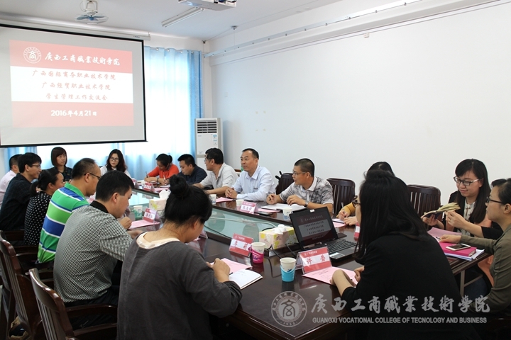 • 2016年4月21日下午,廣西國際商務(wù)職業(yè)技術(shù)學(xué)院學(xué)工處羅蘭芬處長一行,廣西經(jīng)貿(mào)職業(yè)技術(shù)學(xué)院學(xué)工處潘文生處長一行到我院就學(xué)生公寓管理、學(xué)生日常事務(wù)管理等方面的內(nèi)容與我院學(xué)工處進行了工作交流。學(xué)院黨委蒙啟成...