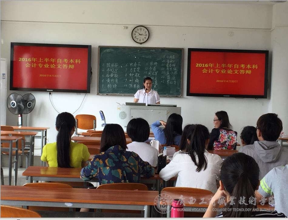 • 2016年4月22日下午及4月23日,繼續(xù)教育部在我院本部(鵬飛校區(qū))第二教學(xué)樓開展2016年上半年自考專本銜接考生畢業(yè)論文答辯工作。此次畢業(yè)答辯涉及就讀主考學(xué)校為廣西財經(jīng)學(xué)院自考本科的會計學(xué)專業(yè)、工商管理專業(yè)...