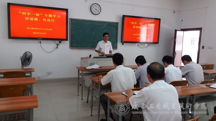 • ??????? 2016年9月6日下午,現(xiàn)代教育技術(shù)中心全體黨員在2303教室開(kāi)展了“講道德、有品行”“兩學(xué)一做”專(zhuān)題學(xué)習(xí)活動(dòng)。學(xué)習(xí)活動(dòng)以中心黨支部書(shū)記林雯同志主講,與會(huì)同志研討的形式開(kāi)展。??????? 結(jié)合專(zhuān)題學(xué)習(xí)的主...