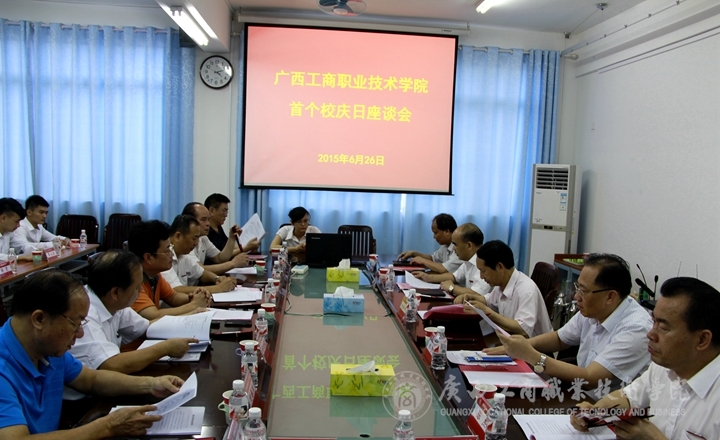 • 2015年6月26日下午,廣西工商職業(yè)技術(shù)學(xué)院“6.26”校慶座談會(huì)在校本部教學(xué)樓109會(huì)議室召開。原糧食局老領(lǐng)導(dǎo)梁雨祥、自治區(qū)糧食局副局長(zhǎng)林愈溪、原學(xué)院院長(zhǎng)陸炳堅(jiān)、原學(xué)院正處級(jí)調(diào)研員藍(lán)天、原黨委副書記、紀(jì)委書...